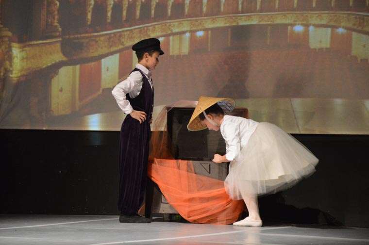 Kroz ovu baletnu priču vode nas dječak i djevojčica koje tumače Gabrijel Ječić i već spomenuta Antonia Juraj. Nenadmašni u svojoj djetinjoj ljupkosti, izvlače, kroz igru, različite predmete koje čuva "čarobna škrinja", a koji između svake točke najavljuju onu sljedeću. Taj domišljati intermezzo ono je što predstavu čini toliko bliskom publici.