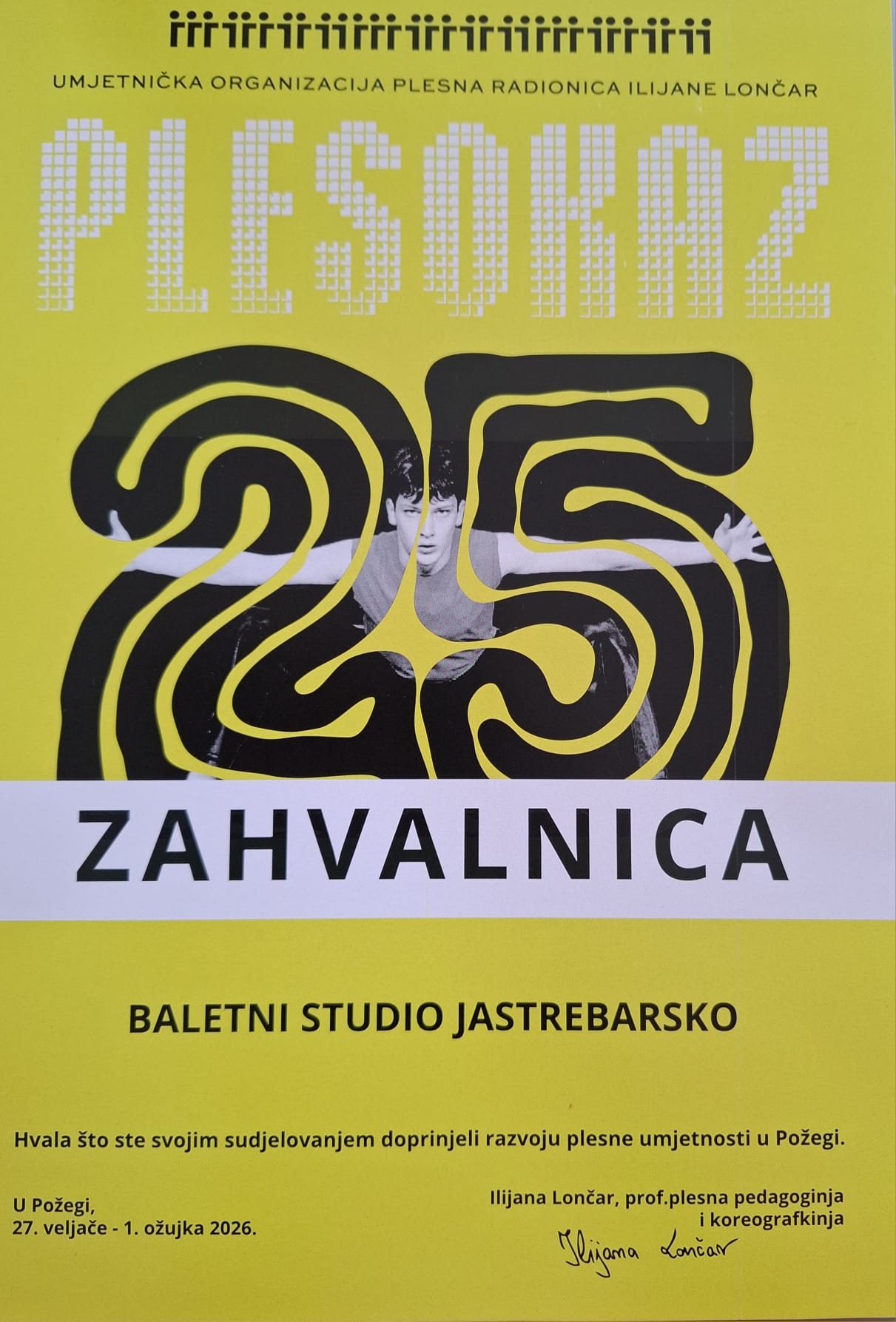 Grad Požega i Gradsko kazalište Požega bili su domaćini 25. Požeškog Plesokaza, međunarodnog festivala koji je od 27. veljače do 1. ožujka okupio više od 500 plesača, gotovo 90 pedagoga i koreografa i sudionike iz čak 45 plesnih škola, studija i udruga iz Hrvatske, Slovenije i Češke. Među njima su se predstavile i balerine Baletnog studija Jastrebarsko.