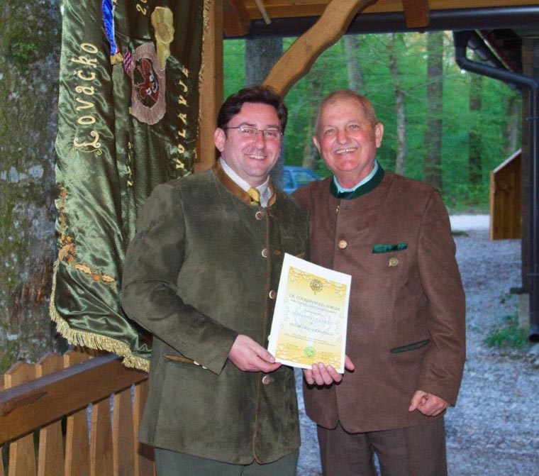 Priznanje za izuzetan doprinos u međunarodnoj promociji lovstva, predsjedniku društva dr.sc.Krunoslavu Pinturu, u ime koordinacijskog foruma za Srednju i Istočnu Europu uručio je predsjednik Foruma, ing. Tone Vršćaj.