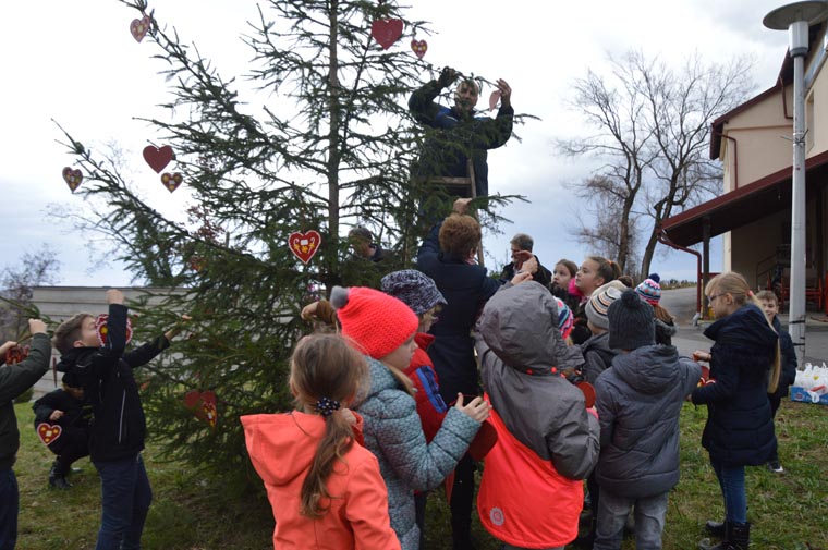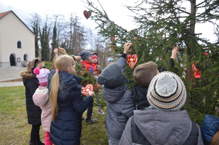 -Ideja je bila da poštujemo tradiciju, a znamo da su tradicijske, drvene igračke u našoj zavičajnoj regiji oduvijek poznate pa smo izradili licitarska srca na šper ploči. Bojali smo ih bojama za drvo i potom ukrasili detaljima. Oduvijek se u našoj područnoj školi vodila briga o tradiciji bilo da je riječ o plesu i pjesmi, božićnim priredbama, ili pak božićnom ukrašavanju bora što sad već treću godinu organiziramo-rekla nam je učiteljica Jadranka Ribarić.