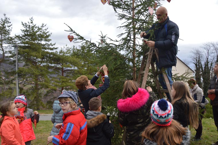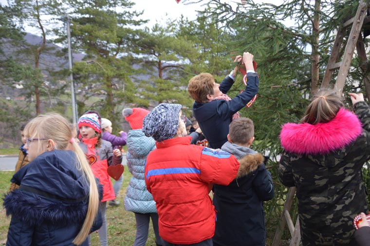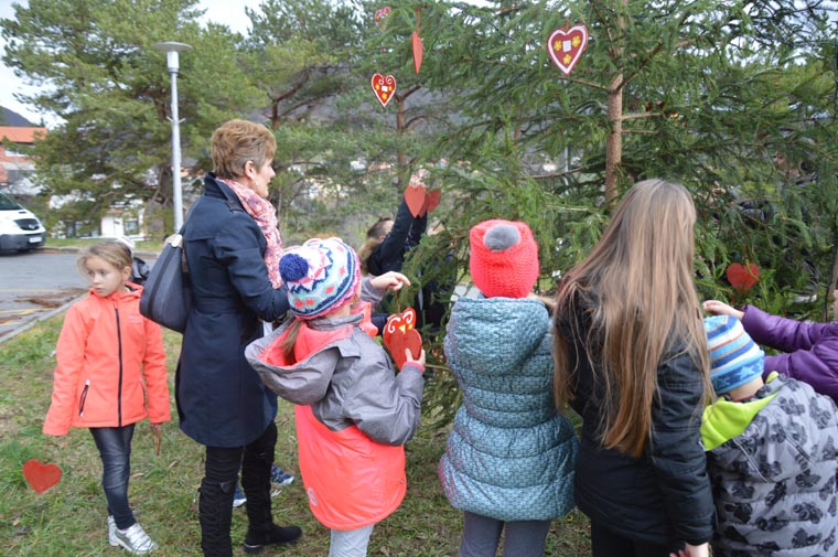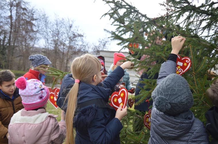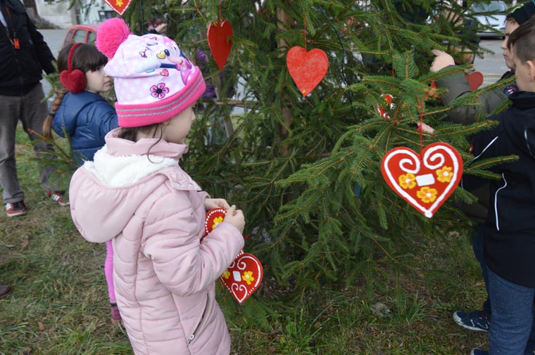 Mališani licitarskim srcima ukrasili bor u Svetoj Jani