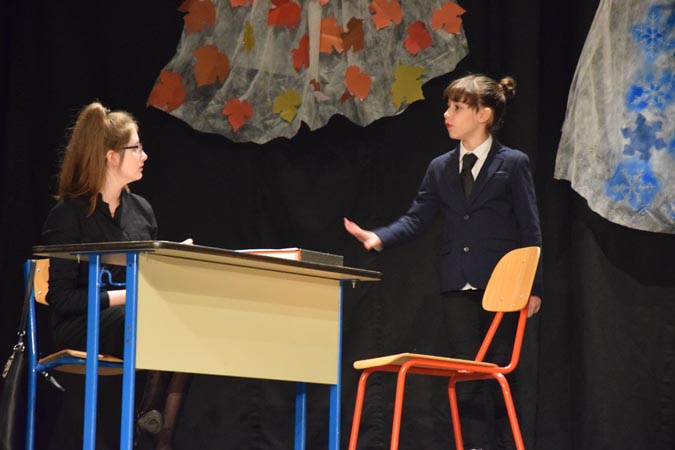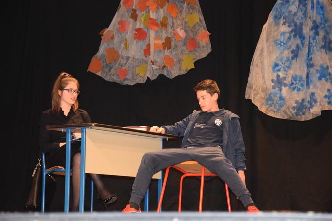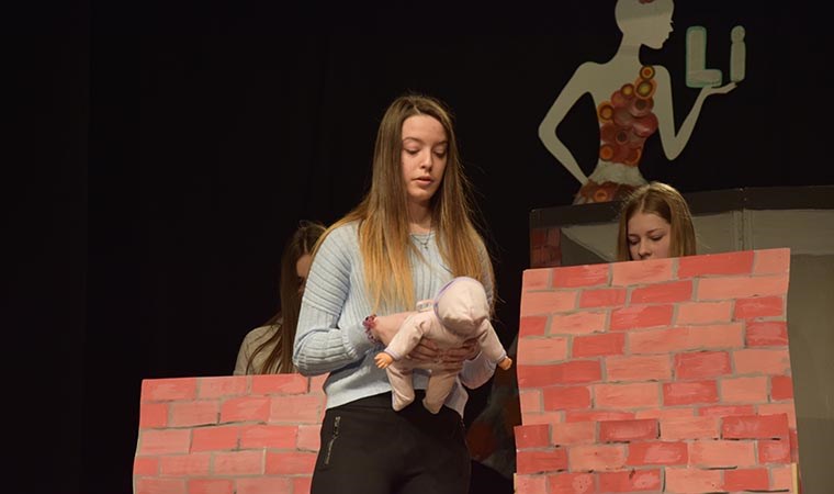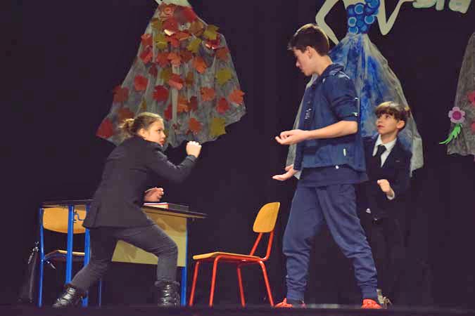 -Predstava se događa o tome da zidamo zid koji na kraju srušimo, on predstavlja zlo, to zlo prelazimo i bit će bolje-kratko je predstavu opisao Marko Sirovica iz OŠ Ljubo Babić koji glumi nasilnog i nemarnog oca u predstavi "I ja hoću proći stazom sretnih ljudi".