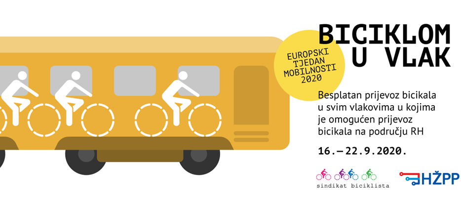 Sindikat biciklista se i ove godine uključio svojim aktivnostima u ovu kampanju uz snažnu podršku poticanja novih mjera za suzbijanje pandemije reorganizacijom prometnih površina ka održivim oblicima kretanja. Kao i svake godine do sada, u suradnji s HŽ Putničkim prijevozom, osiguran je besplatan prijevoz bicikala u svim vlakovima u kojima je omogućen prijevoz bicikala na području Hrvatske u tjednu od 16. do 22. rujna. Poželite li otići na neki izlet, ili samo na drugačiji način stići do svakodnevnog odredišta ovih dana kombinirajte bicikl i vlak.
