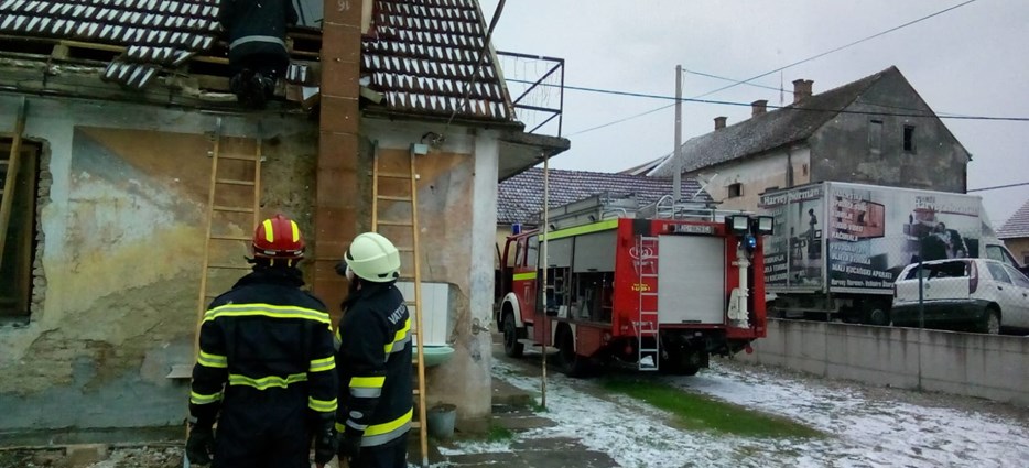 Urušavanje dimnjaka i djelomično urušavanje crijepova s krova kuće u Novakima Petrovinskim