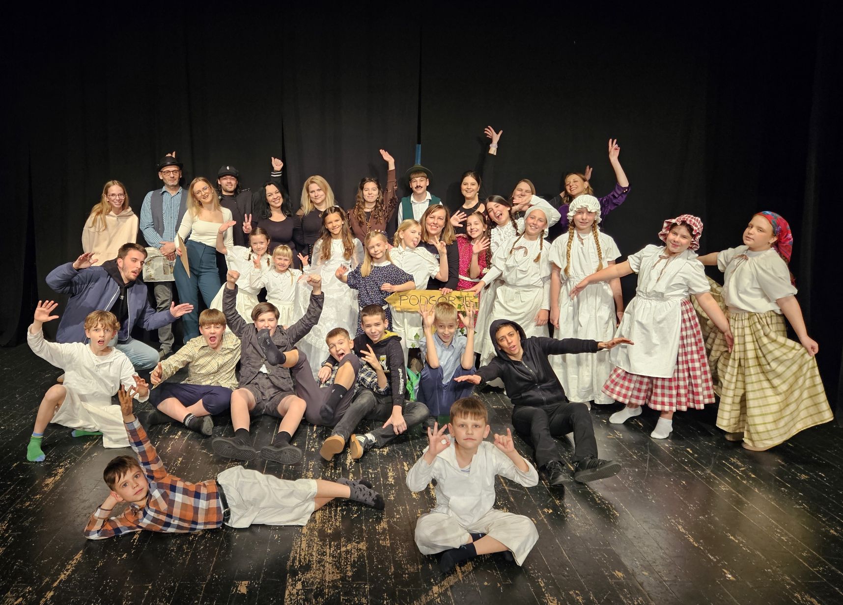Uz brojne mlade glumce (predškolce, osnovnoškolce i srednjoškolce) jaskansko Podgorje dočarale su već dokazane glumačke zvijezde Kazališta Škrabe Maja Žalac, Višnja Polojac, Katarina Cipurić, Dora Pavlešić, Dorian Rodić, Fran Hrvoj, Filip Grgas, Lovro Penić Ivanko, Leon Vlašić, Tia Tutić, Fran Valečić te legenda jaskanskog glumišta Dean Skok.